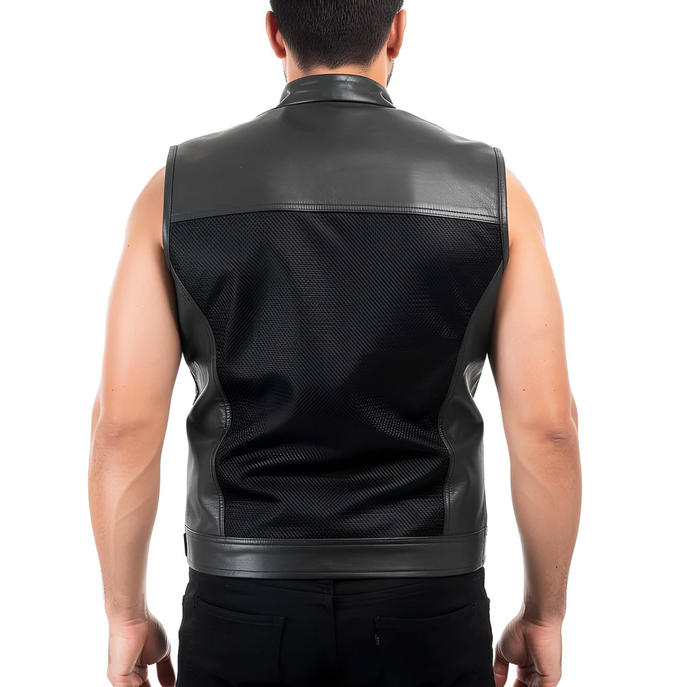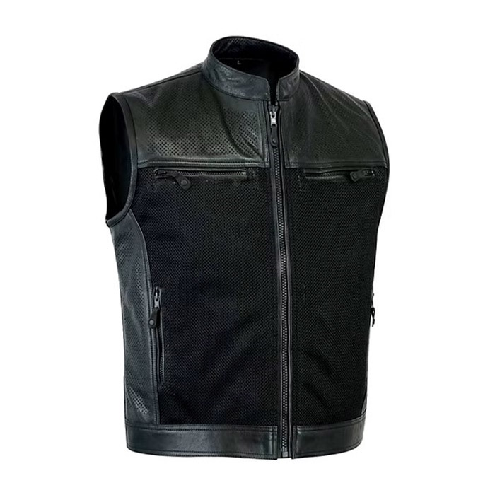 This vest is made of 1.1-1.2mm top grain buffalo Leather. This vest is lightweight, perforated and very durable.