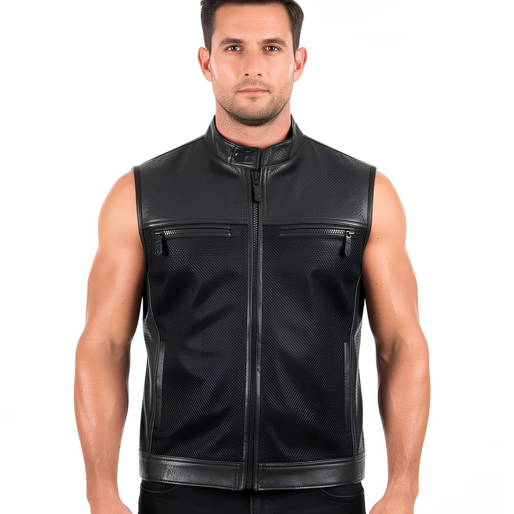This vest is made of 1.1-1.2mm top grain buffalo Leather. This vest is lightweight, perforated and very durable. Perforated leather on the chest makes it trendy, and very comfortable to ride. No doubt you will get compliments on and off you bike wearing this leather vest.