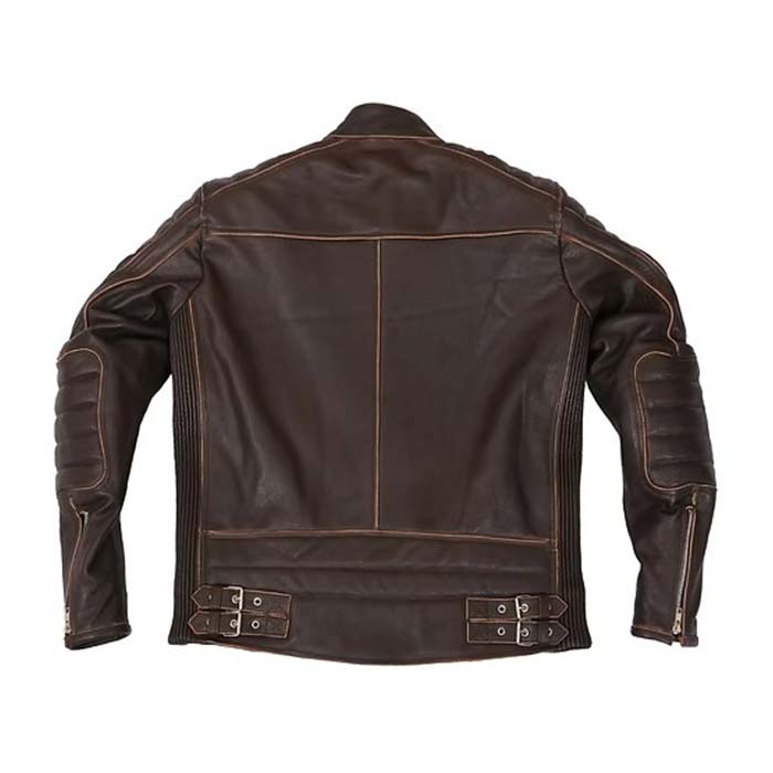 The DYNEX Jacket arrives in a stunning brown color with a classic fit, which sits just above the hips. Crafted with top grain authentic leather. This jacket adds to the daily stylish appeal on and off the bike. The jacket comes with CE viscoelastic back, shoulder and elbow armor. The jacket features antique metal zippers, buckle waist adjusters, functional pockets and authentic cotton lining for your comfort.