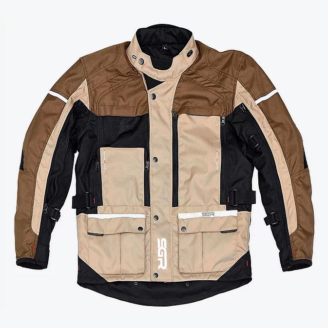 Tracker jacket’s outer shell is durable textile construction with window constructions mesh panels on the chest and back for superb ventilation. Waterproof, breathable membrane provides superior wind- and weather-resistance. Removable CE-certified armor at the shoulders, elbows and back.